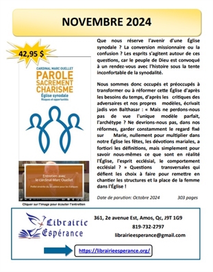 En raison de l'orientation catéchétique du Diocèse, les livres de catéchèse seront disponibles sur commande.